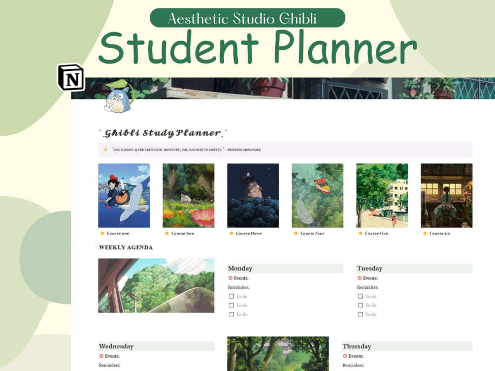 Student Studio Ghibli Notion Planner | Notion Student Planner | Studio Ghibli Study Planner | Aesthetic Study Planner | Anime Planner